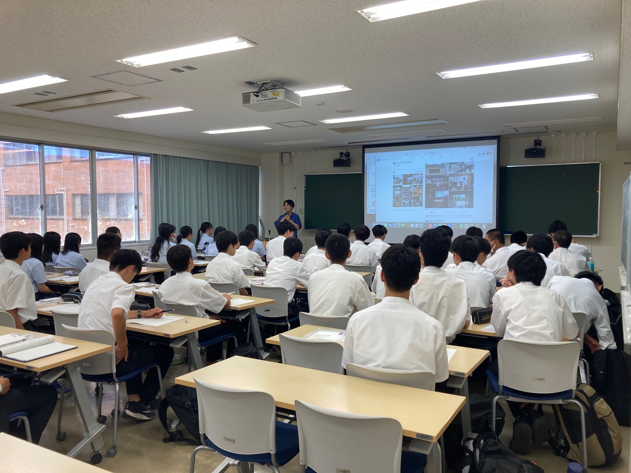 社会工学類の訪問グループは、システム情報系の山本幸子准教授による模擬授業を受講しました。山本准教授からは「地方・農山村の地域活性化の取り組みと地域資源としての空き家・古民家・廃校の活用」のタイトルで講義をいただきました。同校における総合的な探究の時間の学びと関連するテーマでの講義に、生徒たちは熱心に耳を傾けていました。