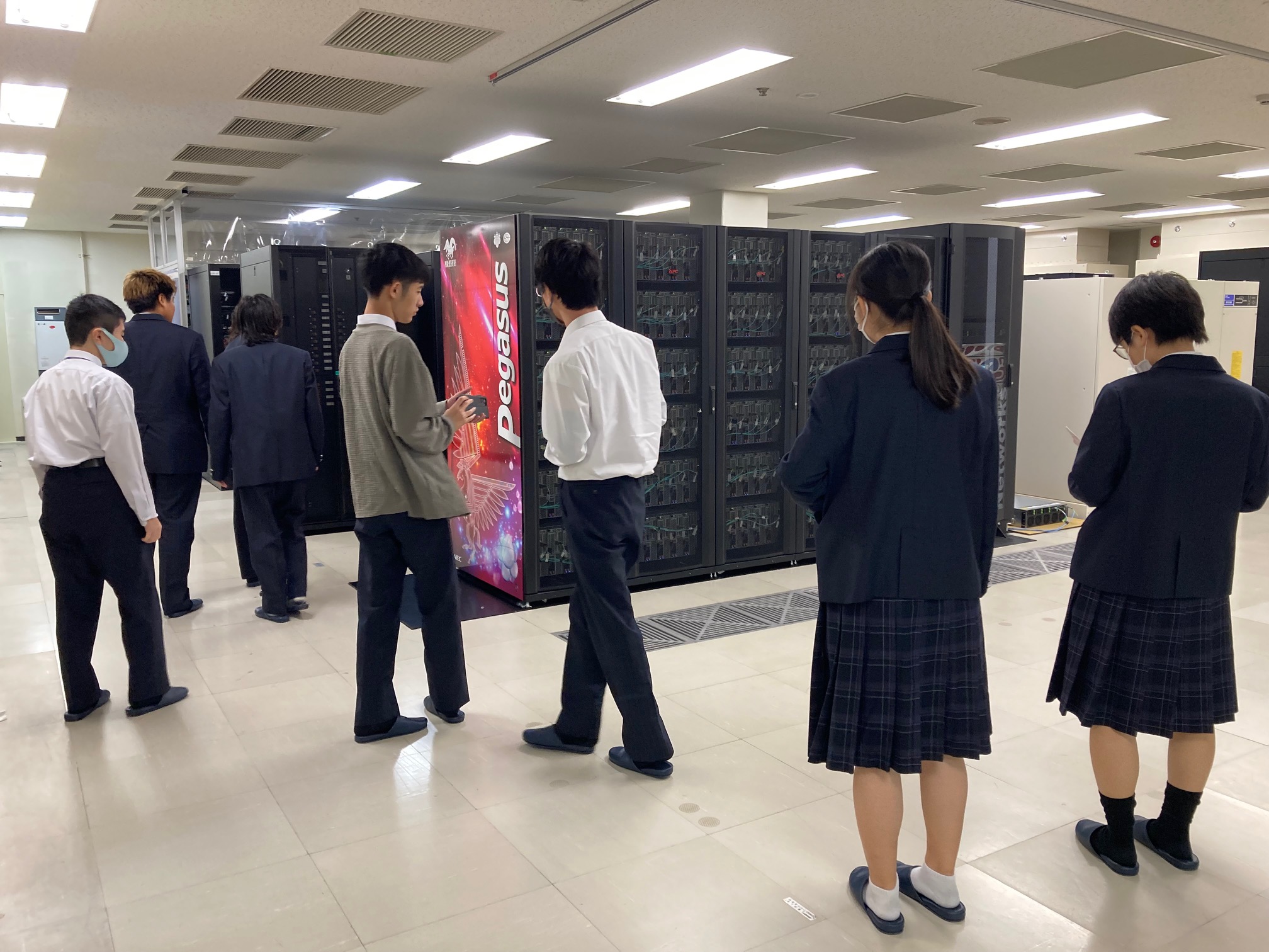 施設見学の様子(写真は本学計算科学研究センター内でスパコンを見学する生徒たち)